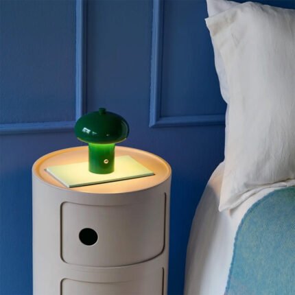 La Seta Portable Lamp es una de esas piezas de diseño que no necesitan justificarse con argumentos: hablan solas. Exclusiva del MoMA Design Store, combina una silueta de hierro lacado en polvo —compacta, redonda, con ese verde que lo cambia todo— con iluminación LED de tres intensidades controlada con un simple toque sobre la pantalla. Recargable por USB, ocho horas de autonomía a plena potencia. Cabe en cualquier rincón pero no pasa desapercibida en ninguno.