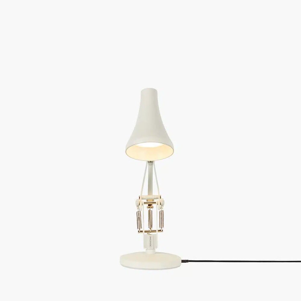 La 90 Mini Mini es la destilación de ese diseño a su escala más pequeña disponible: exactamente la mitad del tamaño de una lámpara de escritorio estándar, con todas las características funcionales y estéticas del original presentes en proporciones que han requerido su propio trabajo de ingeniería. Reducir a la mitad las dimensiones de un objeto articulado no es simplemente escalar los planos: las relaciones entre el peso de los componentes, la rigidez de los resortes y los momentos de torsión en las articulaciones cambian de manera no lineal con el tamaño, y conseguir que una lámpara de esta escala se comporte mecánicamente igual que una de tamaño estándar requiere recalibrar cada elemento del sistema. El equipo de diseño interno de Anglepoise lo hizo, y el resultado es una lámpara que se siente en la mano exactamente como se siente una Anglepoise más grande: suave en los movimientos, estable en cualquier posición, con esa cualidad de mecanismo bien ajustado que es la firma de la marca.